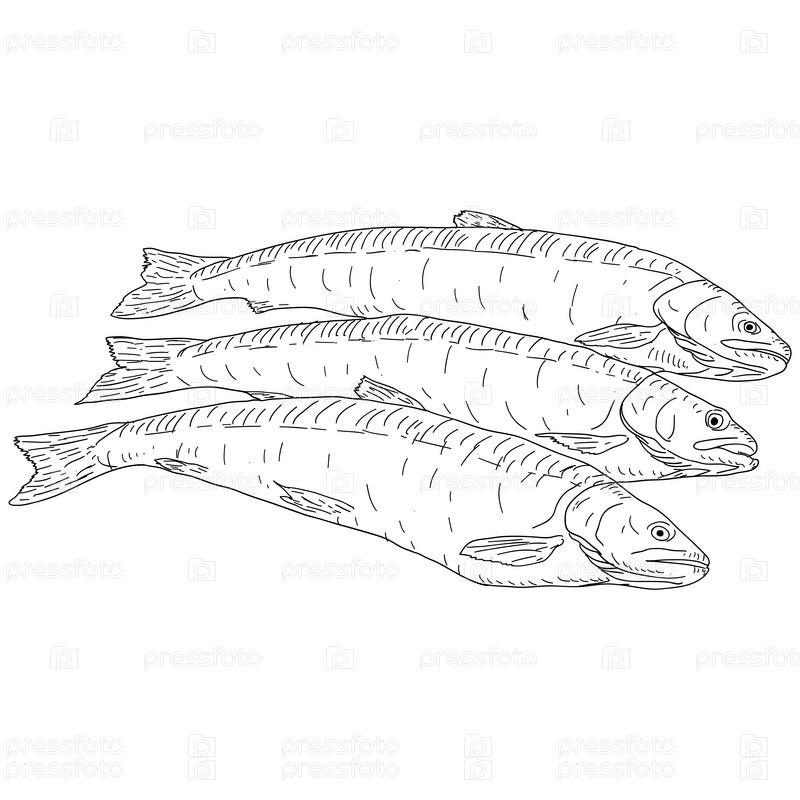 Коллекция эскизов натуральных морских рыб на белом фоне