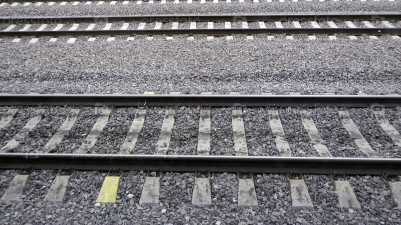 Вид на железнодорожные рельсы и шпалы, идущие за окном поезда, Вид на железнодорожные рельсы и шпалы, идущие за окном поезда
