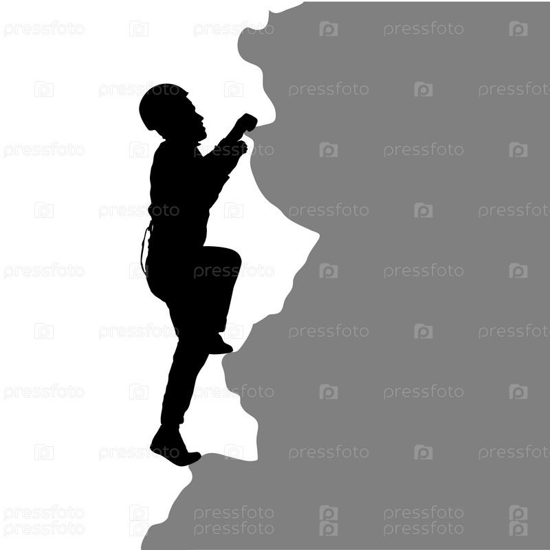 Черный силуэт скалолаза на белом фоне