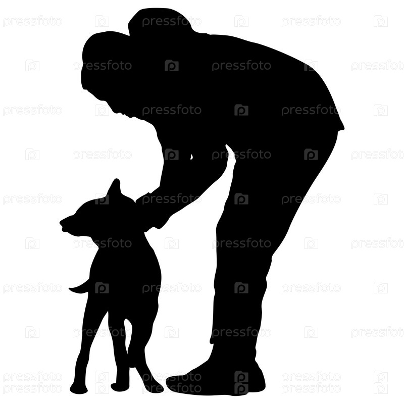 Силуэт женщины и собаки на белом фоне