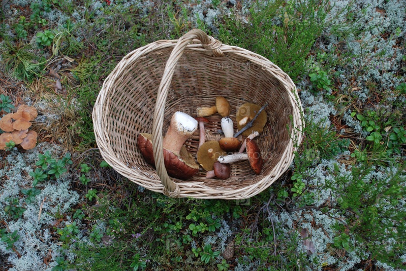 Корзина с грибами стоит на земле