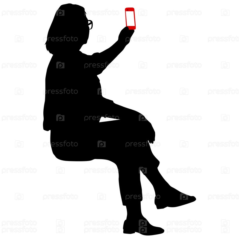 Силуэты женщины, делающей селфи со смартфоном на белом фоне