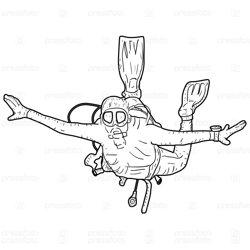 Эскиз силуэта аквалангистов на белом фоне