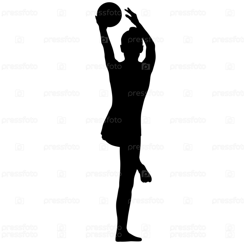 Силуэт девушки-гимнастки с мячом на белом фоне
