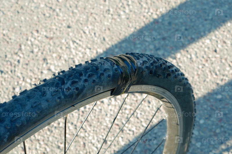 Велосипедное колесо проколото, клюет, ремонтирует велосипедную шину