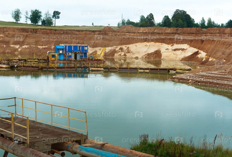 Добыча песка, разработка песчаных карьеров, гидронамыв песка и добыча песка и гравия, скреперы и бульдозеры, земснаряд