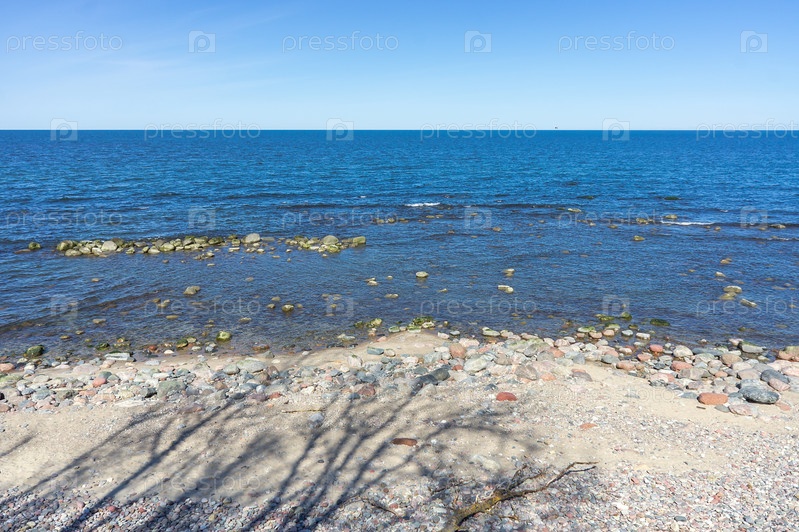 Бурное море и песчаный берег, Балтийское море, пустынное морское побережье