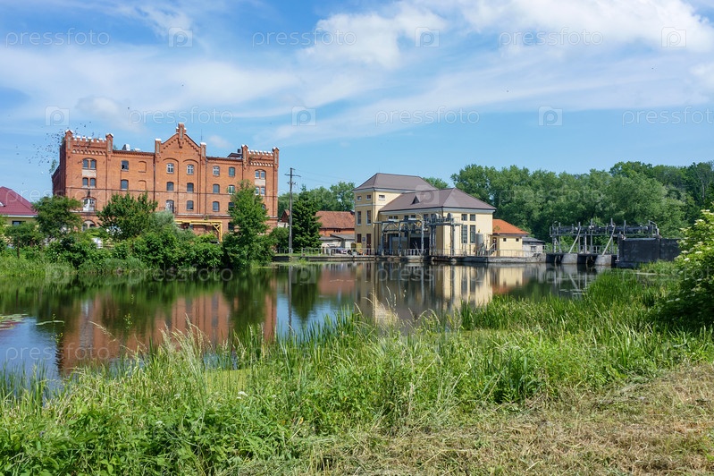 Здание мельницы. Памятник архитектуры конца 19 века. Архитектура из красного кирпича. Озерск (Даркемен, Ангерапп)