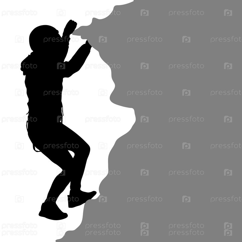 Черный силуэт скалолаза на белом фоне