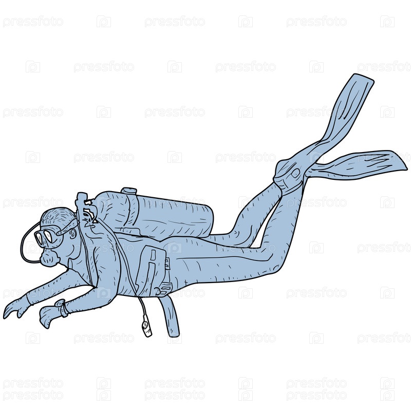 Эскиз силуэта аквалангистов на белом фоне