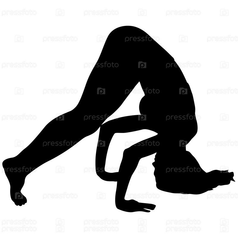 Силуэт девушки на занятиях йогой в позе на белом фоне