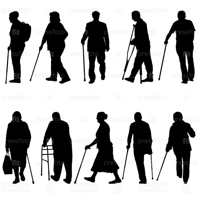 Установите силуэты людей с ограниченными возможностями на белом фоне
