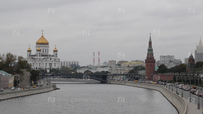 МОСКВА - 14 ОКТЯБРЯ: Московская набережная вдоль Кремлевской стены 14 октября 2018 года в Москве, Россия