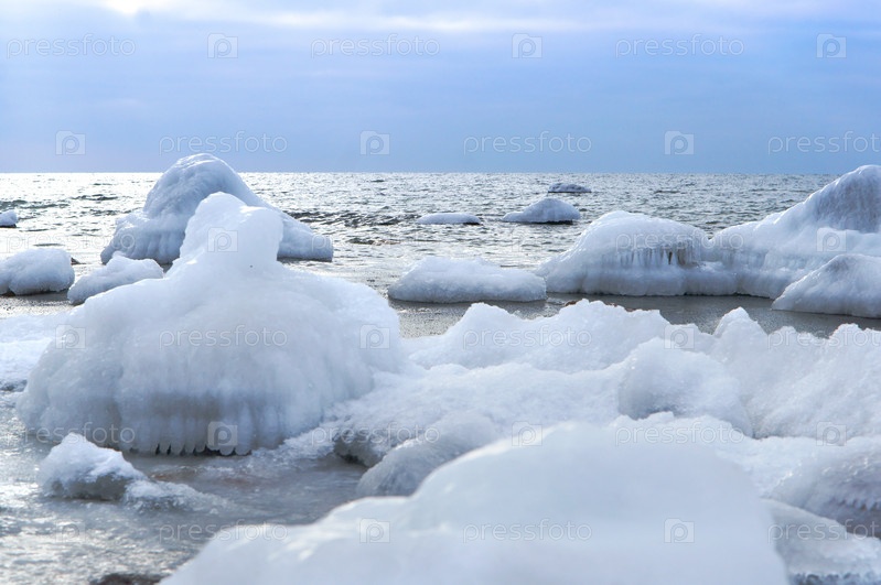 Море замерзло, пробито льдом, морское побережье во льду зима на балтийском море, гололедица на набережной