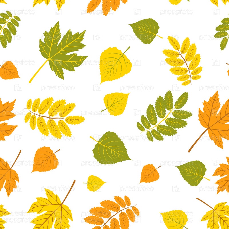 Разноцветные осенние листья бесшовный узор из осенних кленовых и березовых листьев на белом фоне