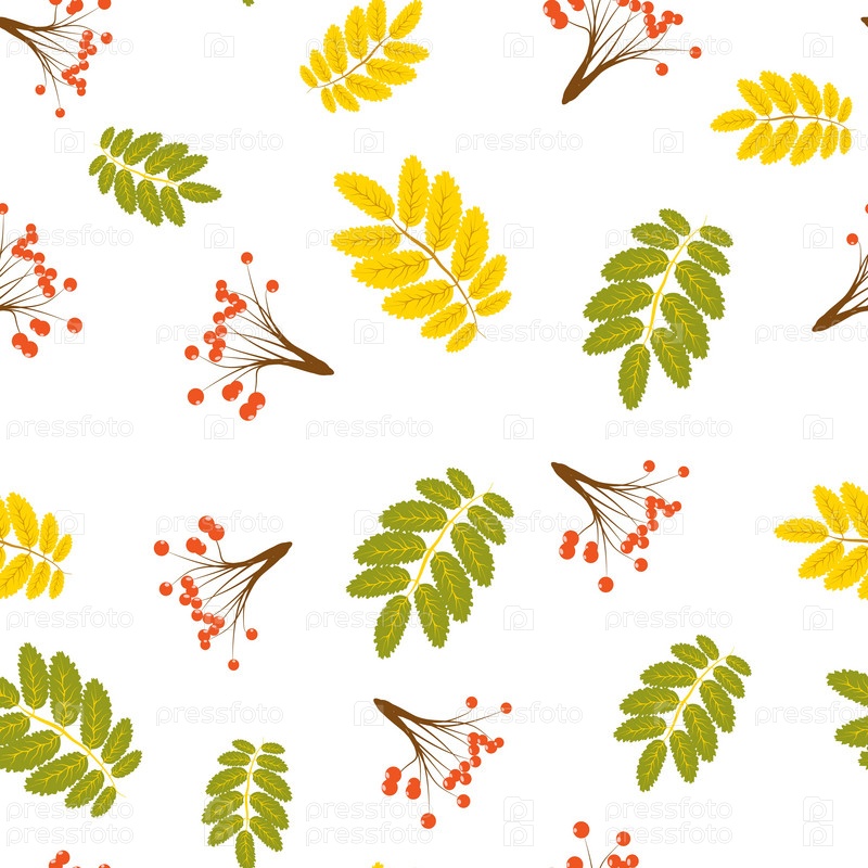 Осенняя декоративная рябина бесшовный узор. Простой повторяемый мотив осенних ягод для ткани, оберточной бумаги, проектов поверхностного дизайна