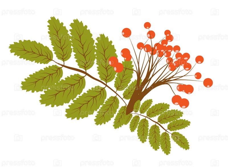 Ветка ягод рябины, осеннее и осеннее лесное дерево рябины с листьями, векторная изолированная икона. Праздник Дня благодарения и осенний сбор ягод рябины