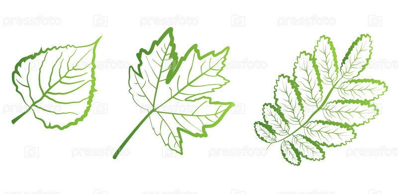 Набор зеленых листьев на белом фоне, для логотипов, значков, рисунков, символики зеленой планеты