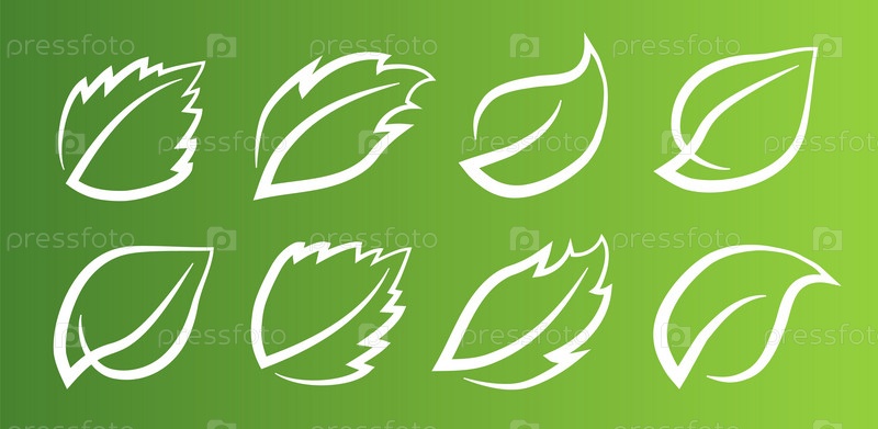 Набор листьев на зеленом фоне, для логотипов, значков, рисунков, для символики зеленой планеты