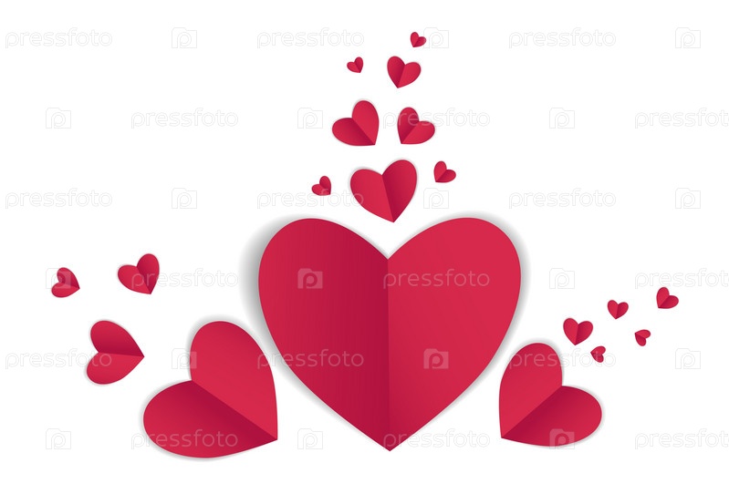 Красные бумажные векторные сердца в конверте, валентинка на день святого валентина. Открытка, открытка, приглашение, шаблон, элемент дизайна на белом фоне