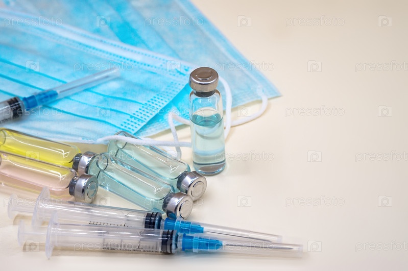 Вакцинация от covid-19, шприцы и флаконы с лекарствами, вакцина и инъекционный шприц, иммунизация и лечение инфекции