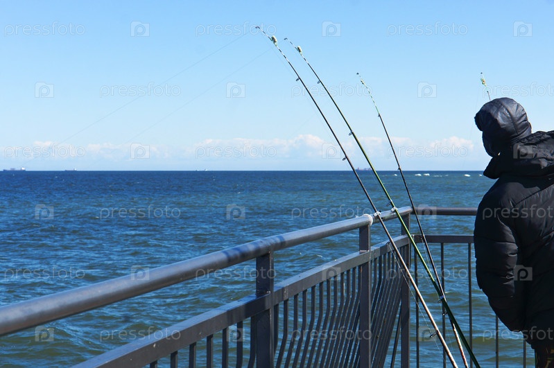 Рыбак на море, рыбалка на море с пирса, ловля щуки в Балтийском море