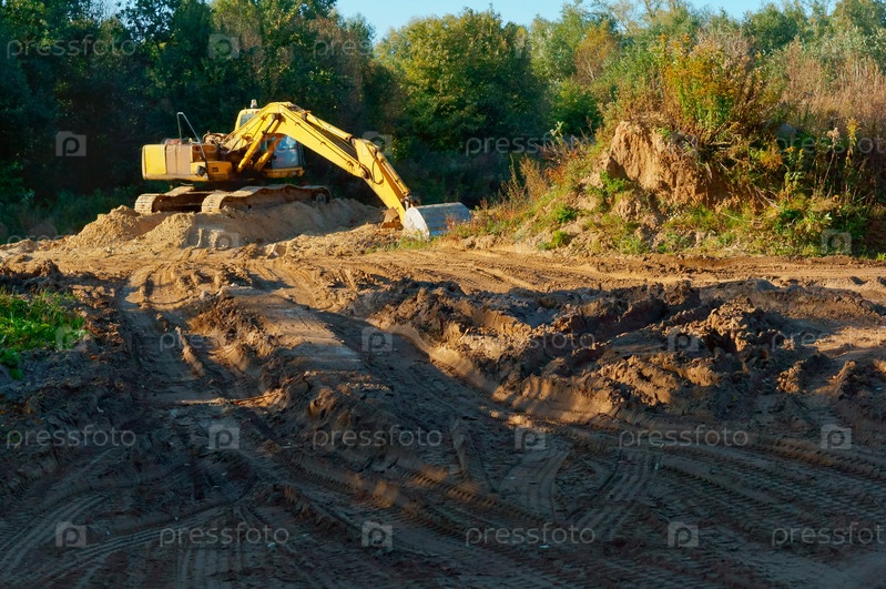 Экскаватор, копать, уничтожать, почва, лес, строительство, сельское хозяйство, строительство