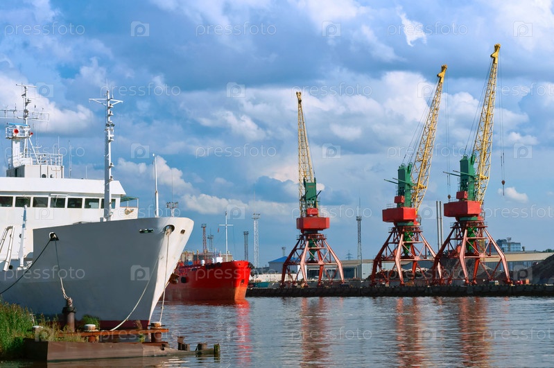 Морской порт, портовые краны, козловой кран, незамерзающий российский порт на Балтийском море Калининград