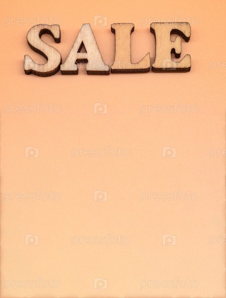 Продажа больших букв, акция. Распродажа со скидкой. Скидка на деревянные буквы на оранжевом фоне