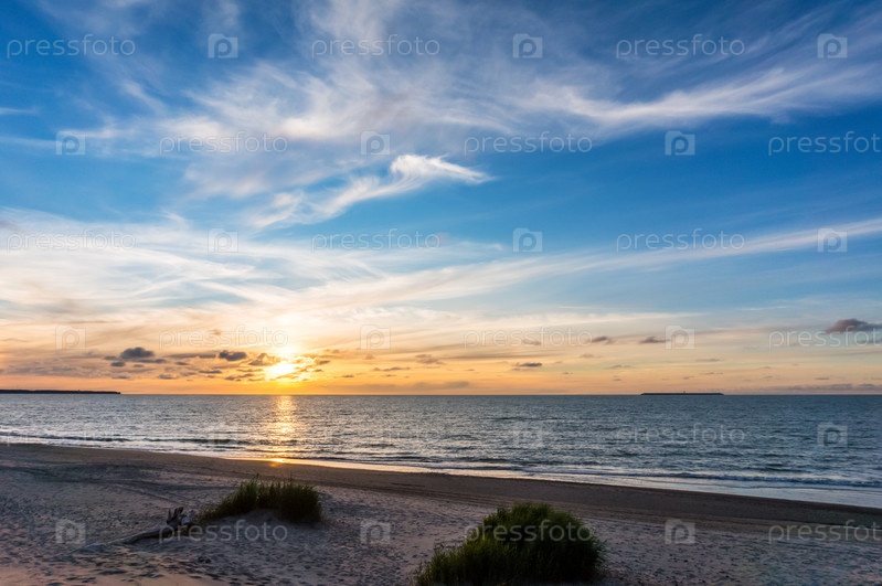 Закат над морем. Отражение солнечного света в морских волнах. Красное небо в лучах заката