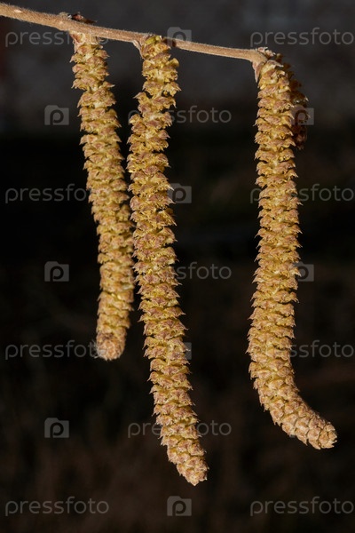 Тыквенные серёжки обыкновенной чечевицы (лат. Corylus avellana) цветут в начале весны до появления листьев