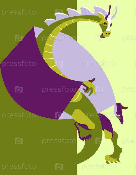 Иллюстрация. Декоративный зеленый дракон на цветном фоне. Новый год 2024. Иллюстрация. Декоративный зелёный дракон на цветном фоне. Новый год 2024