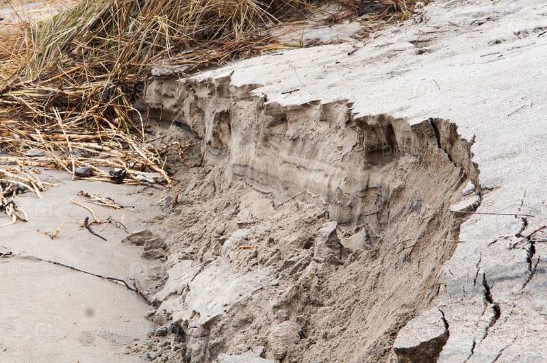 Песчаная дюна, песчаный утес, берег, сухая трава на песке