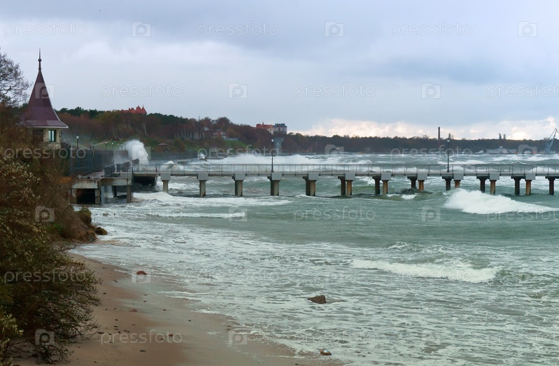 Морские волны. Плохая погода на берегу моря. Балтийское море. Облака в небе