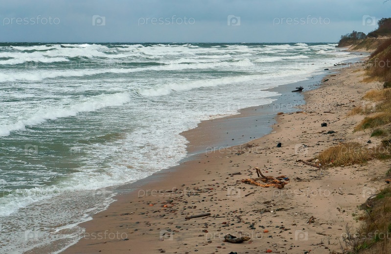 Морские волны. Плохая погода на берегу моря. Балтийское море. Облака в небе
