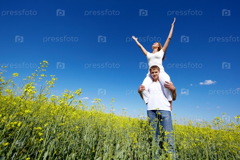 Влюбленная пара в поле