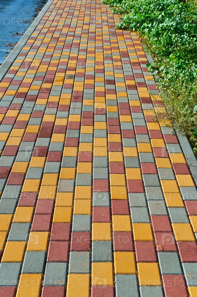 Дорожная плитка, разноцветная брусчатка, тротуар, выложенный плиткой