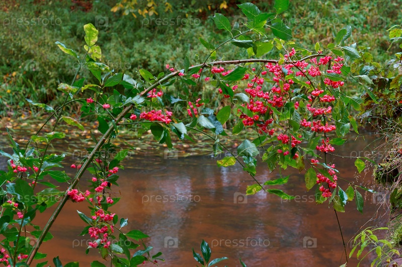 Бересклет осенний крупный план, изображение, листопадный кустарник Бересклет