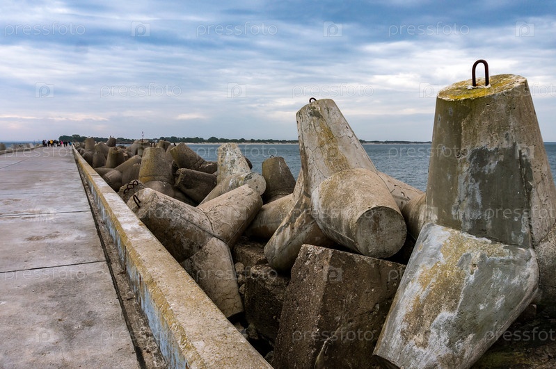 Береговые бетонные укрепления. Железобетонные конструкции вдоль морского пирса