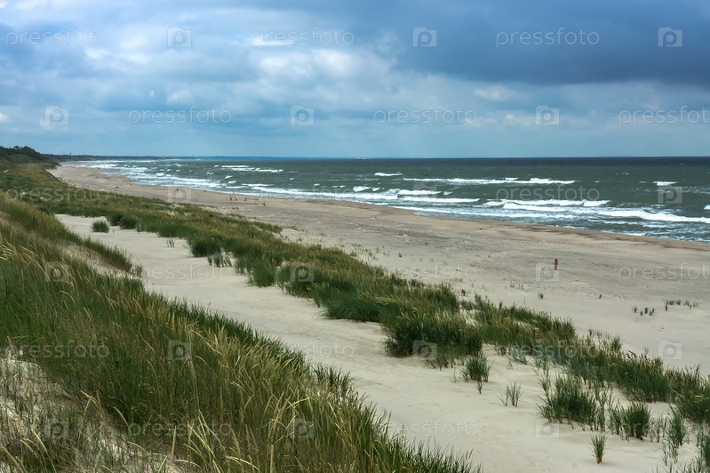 Пустынное морское побережье в плохую погоду. Берег моря без людей