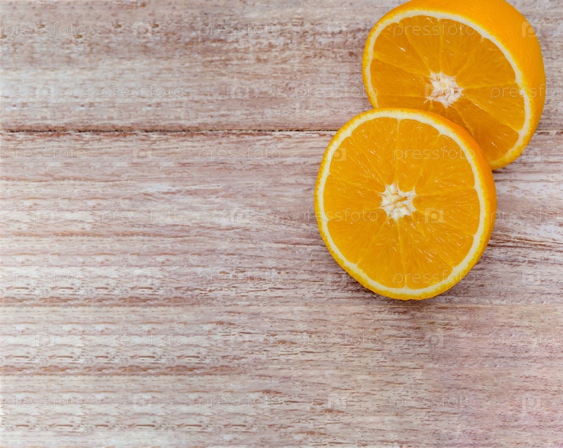Половинки апельсина на деревянном фоне. Апельсины на столе