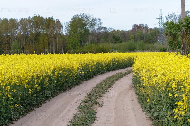 Поле желтого цветущего рапса. Сельскохозяйственные угодья зрелой канолы. Фермерское поле масличных культур