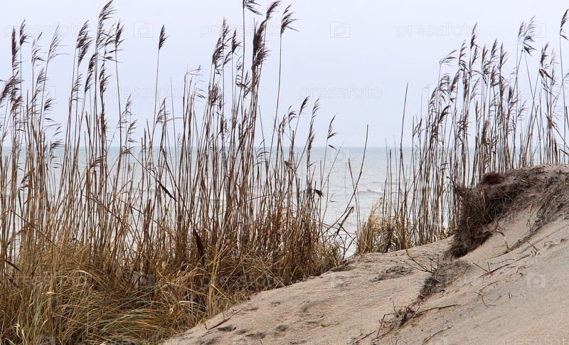 Песчаная дюна, песчаный утес, берег, сухая трава на песке