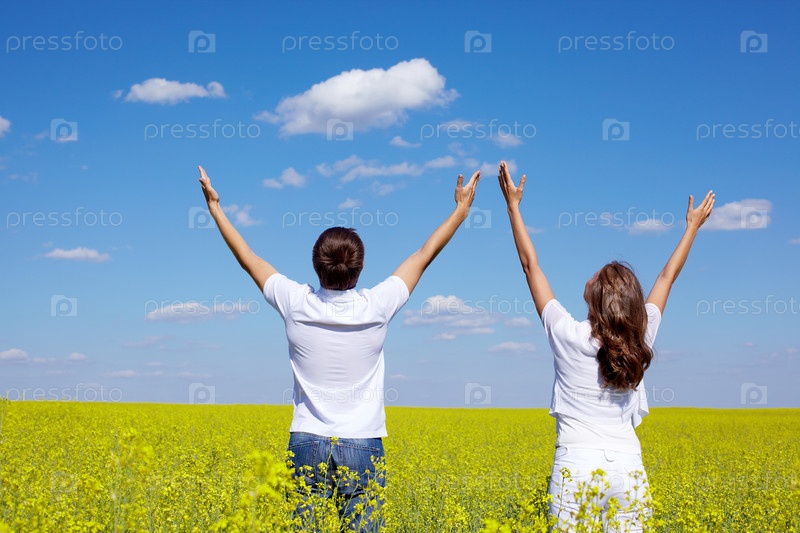 Влюбленная пара в поле