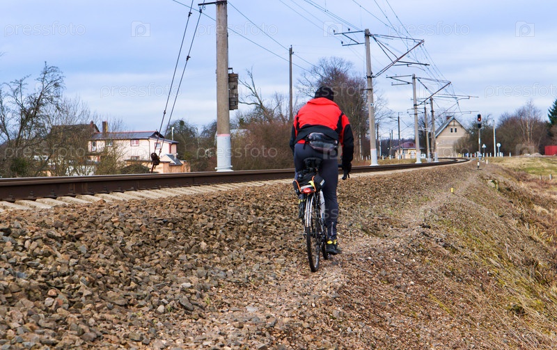 Велосипедист едет по рельсам, велосипедист едет по рельсам