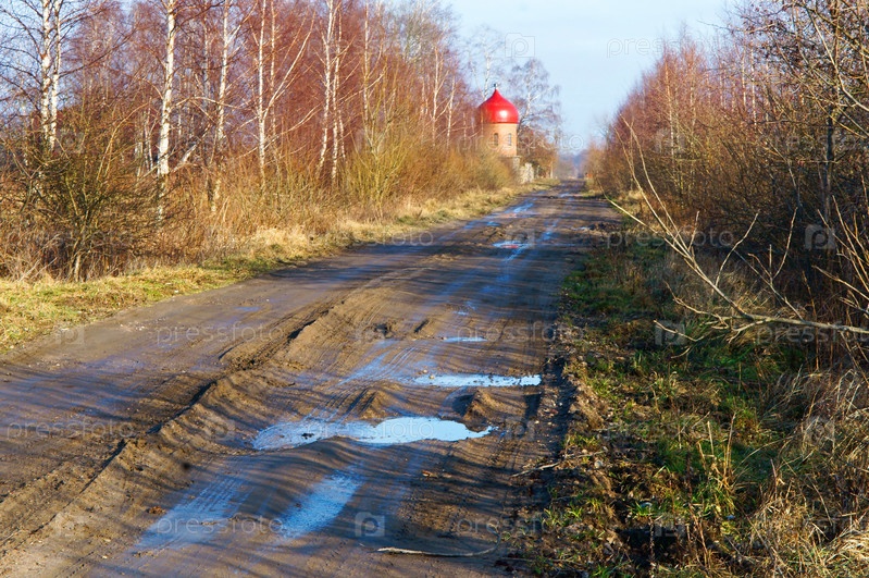 Дорога без покрытия, грунтовая дорога с колеями за городом, грунтовая дорога