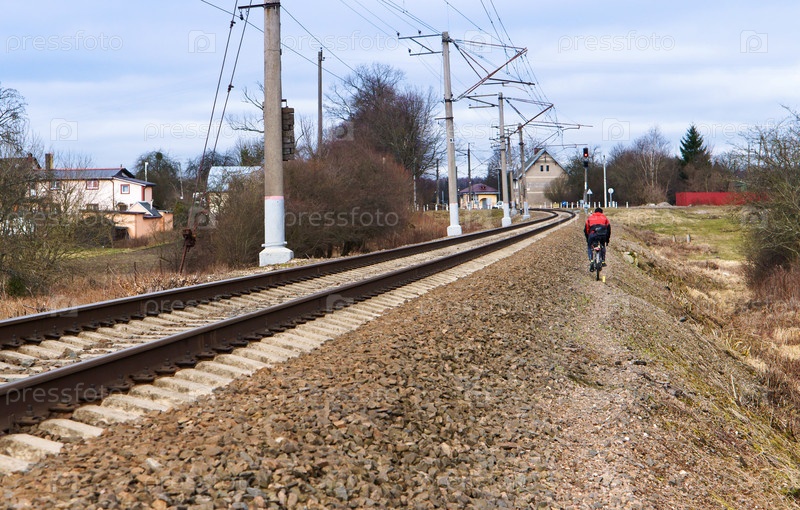 Велосипедист едет по рельсам, велосипедист едет по рельсам