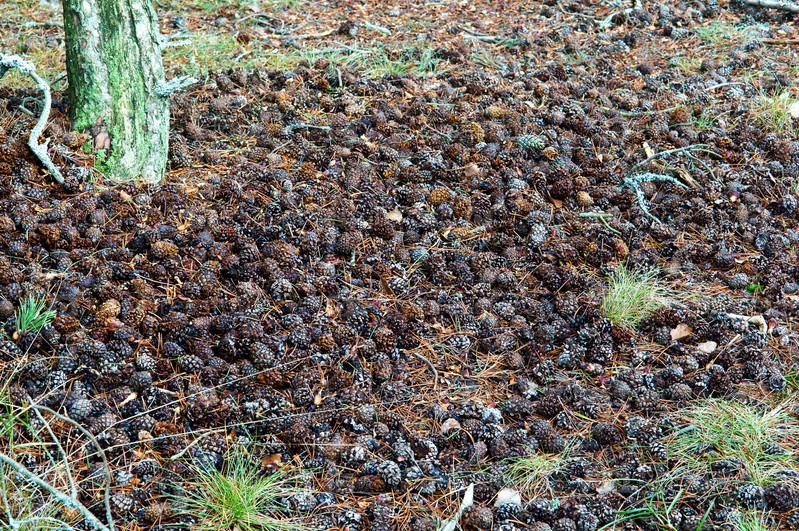 Земля покрыта сосновыми шишками, фон сосновой шишки
