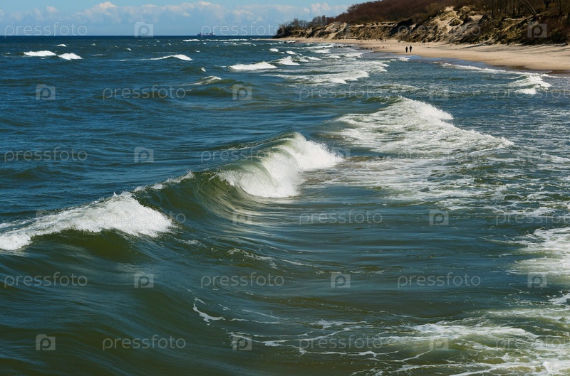 Морские волны на пляже, шторм в Балтийском море