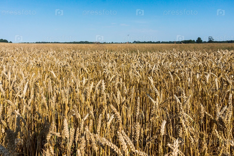 Пшеничное поле. Шипы на сельскохозяйственных угодьях. Выращивание зерновых культур